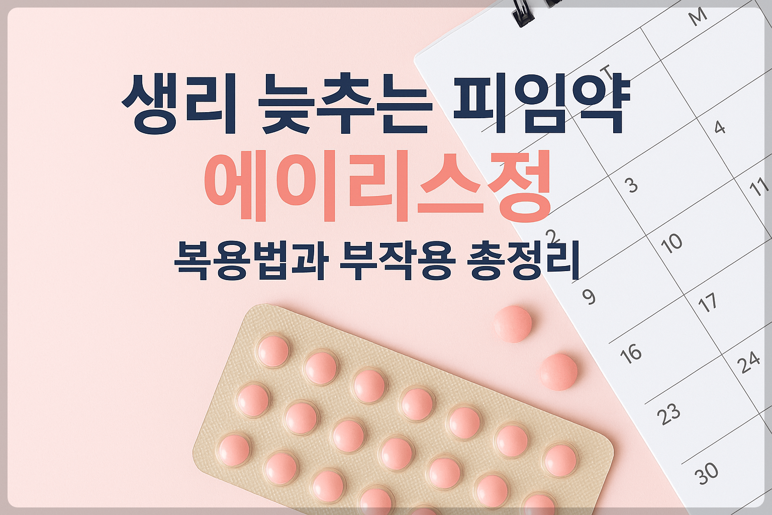 여행, 시험, 결혼식 등 중요한 일정이 있을 때 생리를 미루고 싶을 때 가장 많이 찾는 약이 바로 ‘에이리스정’입니다. 또한 피임 목적이나 여드름 개선 등 다양한 이유로 복용되기도 하죠. 오늘은 약사 출신 전문가의 시각에서 에이리스정의 복용법, 부작용, 주의사항까지 1분 만에 정리해드리겠습니다.