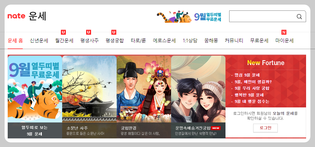 네이트 운세는 새해 무료운세 뿐만 아니라 월간점, 별자리점, 평생사주점 등 다채로운 무료운세 콘텐츠를 제공합니다.