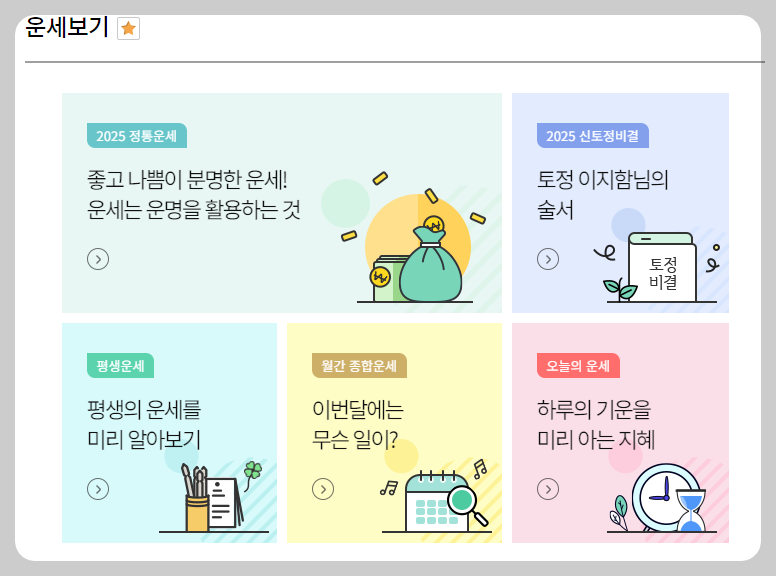 사주, 해몽, 퓨전 운세 등 다양한 운세에 대해 자세히 확인할 수 있습니다.