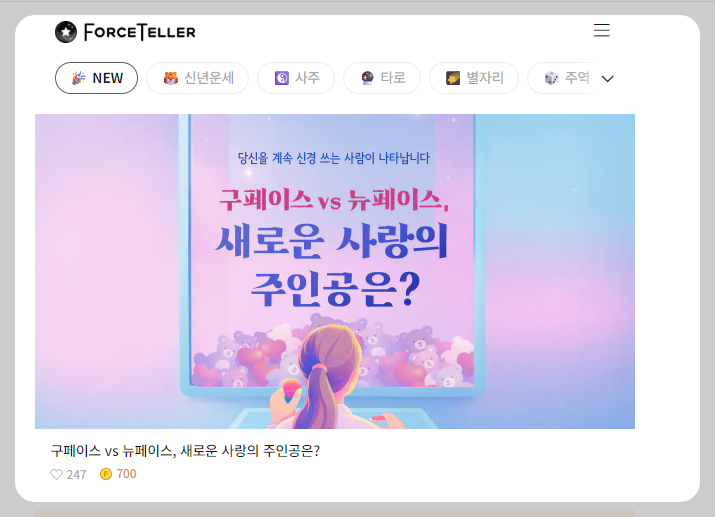 포스텔러 운세는 감각적인 디자인과 다양한 점 서비스로 젊은 세대에게 큰 인기를 끌고 있는 사이트입니다.