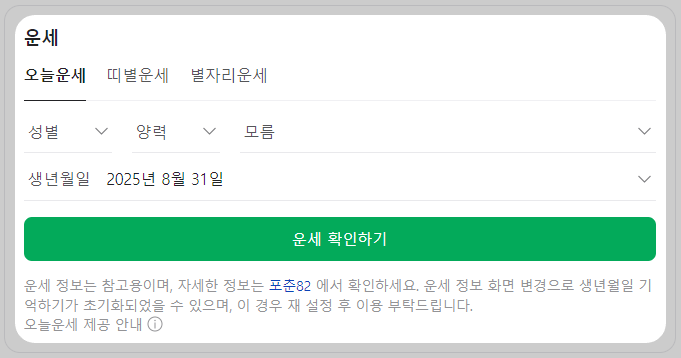 네이버 신년 무료 운세 서비스는 생년월일만 입력하면 오늘의 운세부터 간지별 운세, 별자리 운세까지 바로 확인할 수 있습니다.