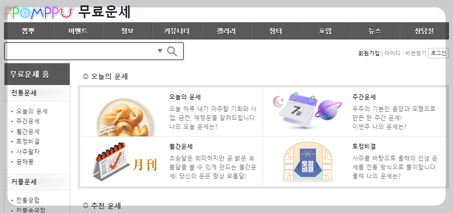 뽐뿌운세는 커뮤니티형 사이트로 무료 신년 운세뿐만 아니라